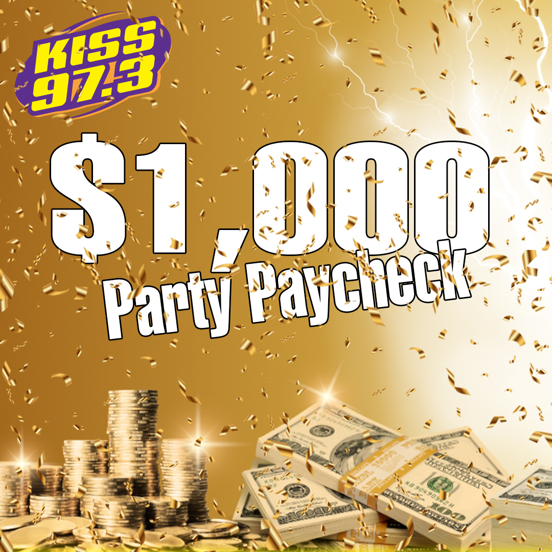 It’s the $1,000 Party Paycheck on KISS 97.3! Listen for the KISS Keyword weekdays at 7am, 11am, 3pm and 5pm! Enter it below for your chance to win $1,000 in this nationwide contest!